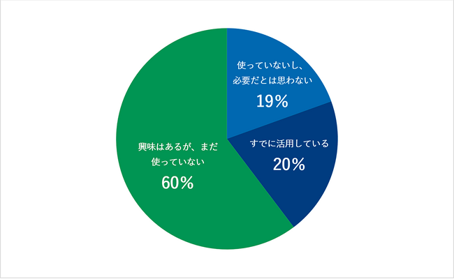 ChatGPTをはじめとしたAIの利用について、「すでに活用している」と回答した方は 20%となり、「興味はあるがまだ使っていない(60%)」と回答した方を合わせると、80%以上の保護者が、AIに対する必要性を感じていることが分かりました。一方、「使っていないし、必要だと思わない」と回答した方は 19%程度に留まり、AIの活用意向は今後さらに広がることが予想されます。