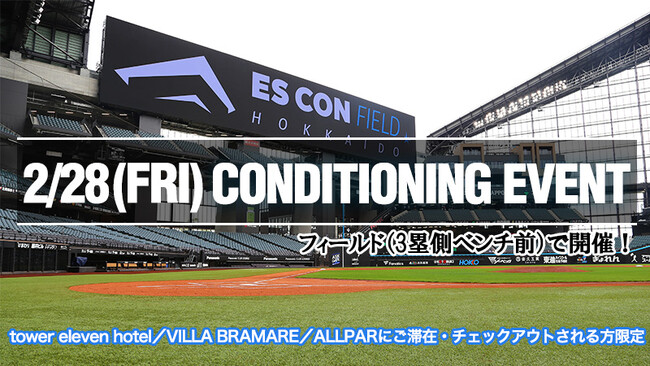 北海道ボールパークFビレッジ内の宿泊施設tower eleven hotelでは、プロ野球オフシーズン限定で販売をしているウェルビーイング滞在プランの最終日、1日限定で「コンディショニングイベント」を開催いたします。