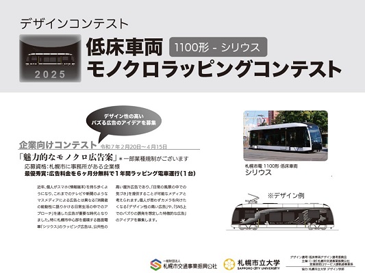 - 【札幌市電】低床車両モノクロラッピングコンテスト(一般向け)を実施します!09/12 09:25