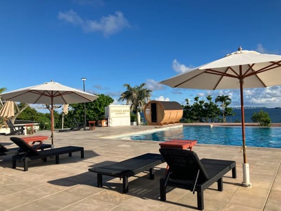 【kokolo sauna(R)】沖縄県宜野座村「リブマックス アムス・カンナリゾートヴィラ」にチラー水風呂Hagoromo1tを導入!リゾートホテルのプールサイドサウナでキンキンに冷える水風呂が大活躍!