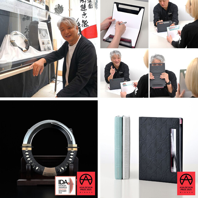 愛知の老舗手帳メーカー・伊藤手帳株式会社(代表:伊藤 亮仁)とのコラボレーション商品「pocheca(ポシェカ)」が、ASIA DESIGN PRIZE 2025でWINNERを受賞いたしました。特に注目いただきたいことは、この「pocheca」のメインデザインを担当したのは、新卒入社2年の若手であることです。経験の少なさを感じさせないその挑戦心と情熱が、世界に認められる成果を生み出しました。この経験は、彼女自身にとっても大きな自信へと繋がったことでしょう。また、岐阜県関市の有限会社濃州堂(代表:五十嵐 啓司)とコラボレーションした作品「日本刀 濃州堂 零式」が、IDA International Design Awards 2024のプロフェッショナル部門でブロンズを受賞いたしました。さらに、ASIA DESIGN PRIZE 2025でもWINNERを受賞し、昨年のDNA Paris Design Awards 2024での受賞に続き、三冠を達成することができました。