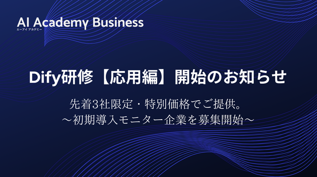 このたび、株式会社エーアイアカデミー(以下、「当社」)では、生成AIアプリケーション開発プラットフォームとして注目を集める「Dify【応用編】」研修を開始いたしましたのでお知らせいたします。