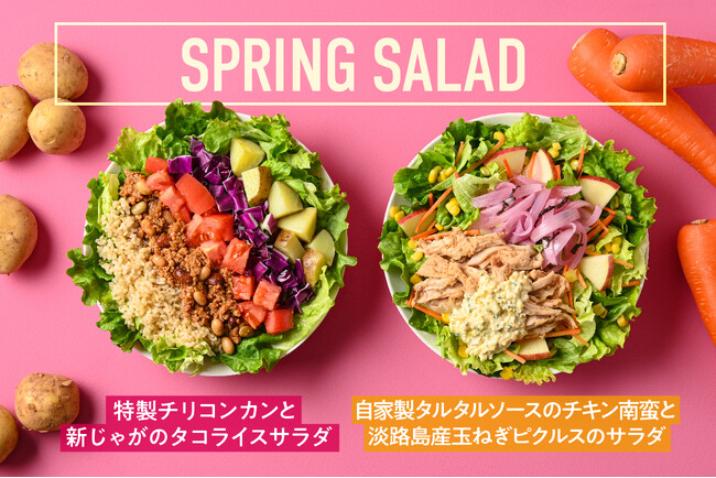 一杯で主食になるサラダボウル専門店を運営する株式会社WithGreen(本社:東京都中央区、代表取締役:武文智洋)は、2025年3月1日(土)から2025年4月30日(水)まで、季節限定サラダ『特製チリコンカンと新じゃがのタコライスサラダ』と『自家製タルタルソースのチキン南蛮と淡路島産玉ねぎピクルスのサラダ』をWithGreen全34店舗で販売します。旬の野菜をおいしさと共に、季節の変化を楽しんでいただけたら嬉しいです。
