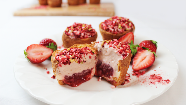 自家製のカスタードクリームと、苺クリーム、苺のコンフィチュールに、フリーズドライ苺とピスタチオを仕上げとして飾ることで、サッパリと深みのある味わいを感じられます。
