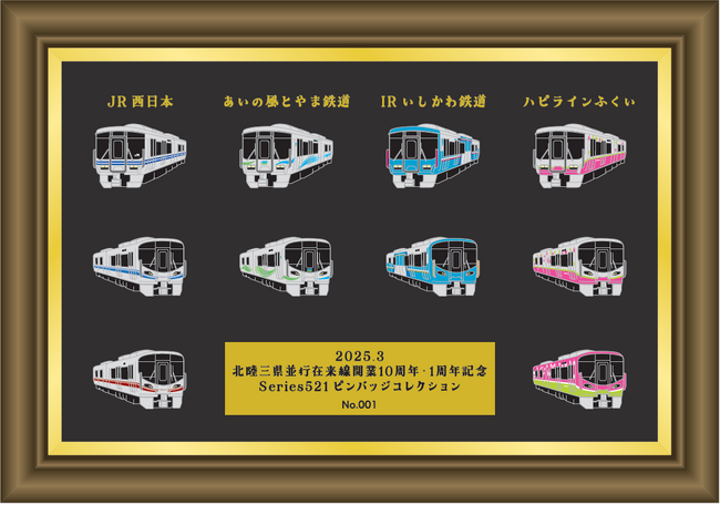 これを記念し、北陸三県の並行在来線各社とJR西日本の計4社の車両デザインで「521系車両ピンバッジ」を一斉発売します!