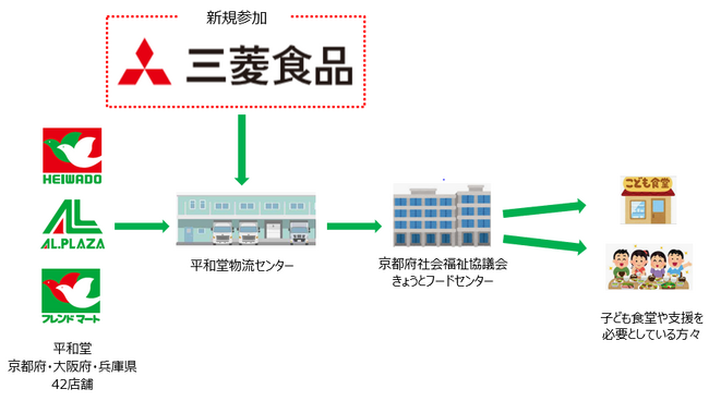 株式会社平和堂(滋賀県彦根市、代表取締役社長執行役員CEO:平松正嗣、以下「平和堂」)は、取引先企業である三菱食品株式会社関西支社(大阪府豊中市、支社長:菅沼利之、以下「三菱食品」)にご協力いただき、フードバンク活動を京阪エリアに拡大します。