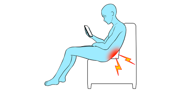 調査結果から、現代のライフスタイルが姿勢に大きな影響を与えていることが示唆されます。この姿勢の悪化の主要な要因として、「仙骨座り」(別名「ずっこけ座り」)が指摘されています。これは、椅子に座る際に背中が丸まり、仙骨部分を支点にして体重をかける姿勢を指します。スマートフォンやパソコンの長時間使用により無意識のうちに取られやすいこの姿勢は、頭の前傾(ストレートネック)や猫背の原因の一つとなっています。