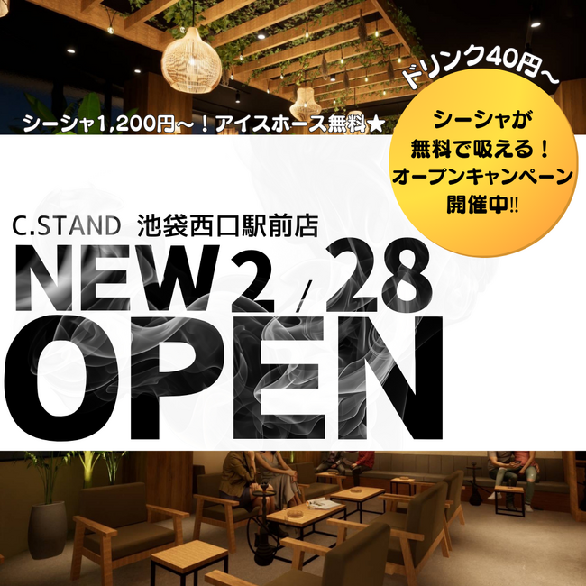 C.STAND 池袋西口駅前店のオープンを記念し、「レギュラーシーシャ無料券」プレゼントキャンペーンを実施いたします。