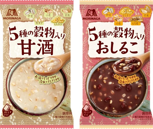 5種の穀物の香ばしいおいしさと具材を閉じ込めたフリーズドライ「5種の穀物入り甘酒」「5種の穀物入りおしるこ」~3月4日(火)より新発売~