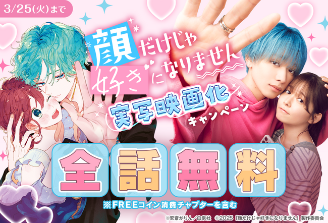 株式会社白泉社が運営する総合エンタメマンガアプリ・マンガParkでは、『顔だけじゃ好きになりません』(安斎かりん)の実写映画化を記念して、『顔だけじゃ好きになりません』『きょうだいごっこ』など安斎かりんの大人気作品を全話無料で配信するキャンペーンを実施いたします。