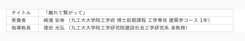 令和6年度は、到津南団地(北九州市小倉北区)の住戸について、学生による住戸リノベーションプランの提案をコンペ形式で実施しました。最優秀プランは、実際にリノベーション工事を行い、令和7年3月1日からUR賃貸住宅として一般のお客様向け内覧会及び入居希望者向けの抽選申込受付を行います。