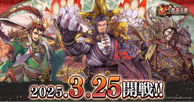 double jump.tokyo株式会社(本社:東京都新宿区、代表取締役:上野広伸・松谷幸紀、以下「double jump.tokyo」)は、軍勢カードバトルゲーム『魁 三国志大戦 -Battle of Three Kingdoms-』(以降、『魁 三国志大戦』 )を2025年3月25日(火)よりPC、Android、iOS向けに正式リリースすることをお知らせいたします。