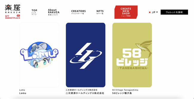 また、ショップに関しては、サービスのローンチ以降誰でも開設することが可能で、CREATORS’ 楽座内で開設したショップで出品すると、NFTマーケットプレイス「楽座(RAKUZA MARKET PLACE)」内でも出品申請が可能になります。