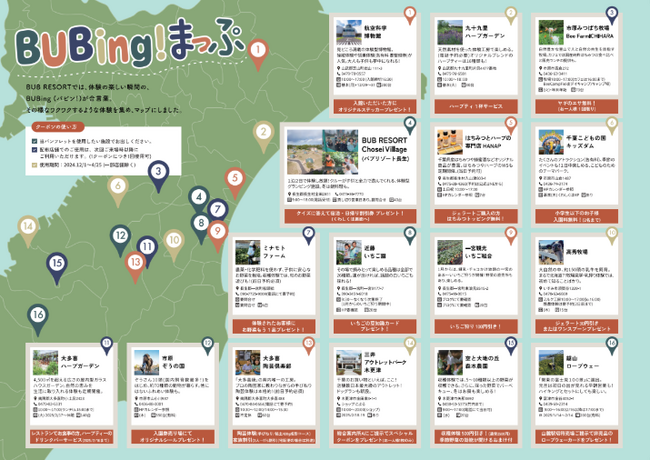 株式会社BUB(所在地:東京都品川区、代表取締役:一戸 悠人)は、運営施設であるBUB RESORT Chosei Village(所在地:千葉県長生村)において、冬季の屋外活動の機会創出と地域の観光振興を目的とした新たな取り組みを開始いたしました。冬は室内で過ごしがちな季節ですが、温暖な気候を活かした千葉県ならではの冬の魅力を発信するため、県内の家族向け施設16社との連携のもと、「千葉 冬の体験観光ガイド」を企画・制作いたしました。