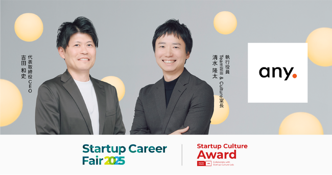 any株式会社(所在地:東京都千代田区、代表取締役:吉田和史、以下:any)は、2025年3月1日(土)に開催される「Startup Career Fair 2025」のスタートアップピッチでの代表取締役CEO 吉田和史の登壇および、同時開催の「Startup Culture Award」へ執行役員 TeamWill & Culture室長 清水 隆太が登壇することをお知らせします。