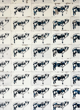 本展では、新しい取り組みとして、《身体による-Scrap&Build-》を発表します。クローン羊で知られる「ドリー」の図像をカーボン紙でキャンバスにひたすら複製することで、ズレやかすれのある不完全なコピーが並ぶこの作品は、クローン実験がはらむ問題を視覚的に表現しています。