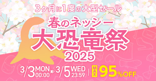 株式会社SynaBiz(本社:東京都品川区、代表取締役:杉本 聡、株式会社オークファン100%子会社)が運営する国内最大級のBtoB仕入れモールNETSEA(ネッシー)では、3月3日(月)~5日(水)の3日間、季節ごとに行われる3か月に一度の大型セールイベント「春のネッシー大恐竜祭2025」を開催いたします。