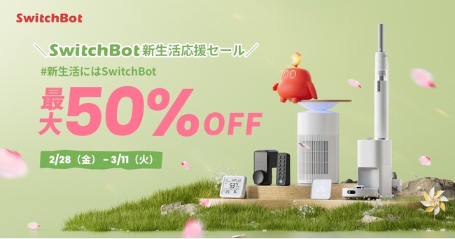 2月28日(金)~3月11日(火)の期間中、SwitchBotではAmazon スマイルSALE 新生活をはじめ、公式サイト、楽天公式店舗にて製品が最大半額で手に入る「新生活応援キャンペーン」を実施。