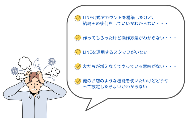 LINE公式アカウントは、店舗や企業の集客・顧客管理において重要なツールとして注目されています。しかし、中小企業や個人事業主の多くは「忙しくて更新できない」「ITリテラシーが低く、うまく活用できない」といった課題を抱え、開設後に放置されるケースが後を絶ちません。
