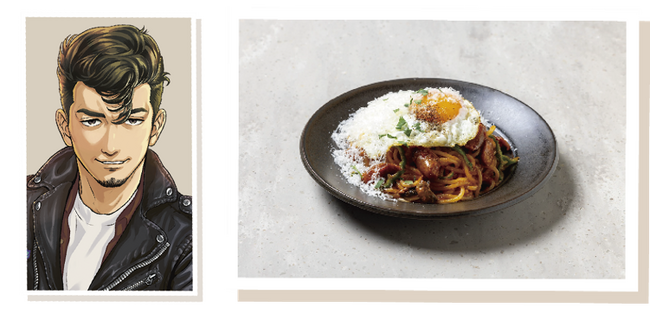 角出大和のアツさと渋さをイメージしたメニューです。どこか懐かしさを思い出すようなナポリタンの美味しさに加えて、角出大和らしさ全開の、大きな目玉焼きがのっているのが特徴的な一品。子供から大人まで楽しめるメニューです。