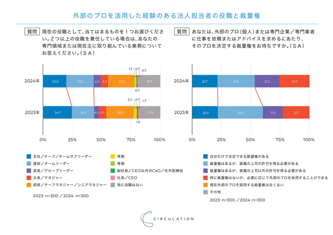 27,000名以上のプロの経験・知見を複数の企業でシェアし、経営課題を解決するプロシェアリング事業を運営する株式会社サーキュレーション(所在地:東京都渋谷区、代表取締役社長:福田 悠、以下サーキュレーション)は、2024年11月に外部のプロを活用した経験のある企業担当者300名に対して「法人のプロ人材活用実態調査」を行いました。