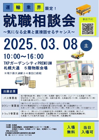 【後援】北海道運輸局、北海道労働局(ハローワーク札幌)、北海道バス協会、北海道ハイヤー協会、北海道トラック協会