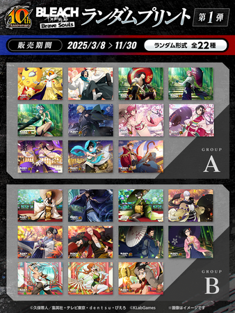 KLab株式会社(本社:東京都港区、代表取締役社長 森田英克、以下「KLab」)が提供する爽快3Dアクションゲーム『BLEACH Brave Souls(ブリーチ ブレイブソウルズ)』(以下「ブレソル」)は10周年を記念し、全国のセブン‐イレブン店内のマルチコピー機で購入できるプリントサービス「セブンプリント」で「BLEACH Brave Soulsランダムプリント」を3月8日(土)より展開します。第1弾では、正月衣装、番傘衣装、サバク・ソサエティ、オリエンタル・ソサエティのキャラクターが登場!