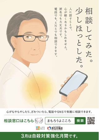 厚生労働省(所在:東京都千代田区)は、毎年 3月の「自殺対策強化月間」において、関係府省庁等と連携し自殺対策に関する国民の理解を深めるための啓発活動や、悩みを抱えた人に対する各種相談事業の周知活動を強化しています。