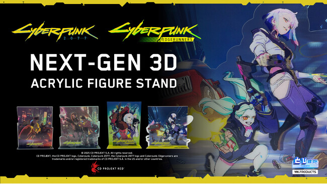 キャラクターグッズブランド「Y4K PRODUCTS」(販売元:株式会社YSC)から、特許出願中の次世代3Dキャラクタースタンド『とびすた(R)』シリーズと『サイバーパンク2077』『サイバーパンク: エッジランナーズ』(CD PROJEKT RED)のコラボアイテムが予約開始となりました。