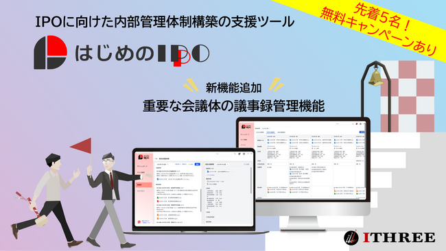 「IPOに『楽』を提供する」を経営理念にIPO・IR・INNOVATIONを支援するアイスリー株式会社(所在地:東京都中央区、代表:金誠智、以下、「当社」という。)は、IPOに向けた内部管理体制の構築を支援する「はじめのIPO(はじめのいっぽ)」に、新機能を追加いたしました。