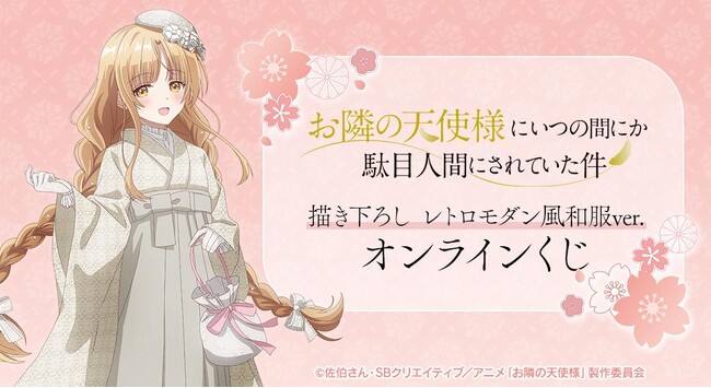 漫画・アニメのオリジナルグッズを販売する株式会社アルマビアンカ(本社:東京都中野区、代表取締役:坂井智成)は、自社オンラインくじサービス「DRAW!DRAW! -ドロー!ドロー!-」にて2月25日(火)よりTVアニメ「お隣の天使様にいつの間にか駄目人間にされていた件」描き下ろし レトロモダン風和服ver. オンラインくじを販売いたします!