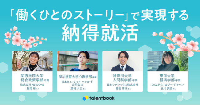 就活・転職活動に役立つキャリア学習サイト「talentbook」及び、法人向け採用マーケティング支援サービスを提供するtalentbook株式会社(本社:東京都渋谷区、共同代表取締役:大堀航/大堀海)は、talentbook利用企業へ新卒入社(25卒の内定者を含む)した方の、就活ストーリーを公開いたしました。