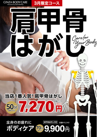 【カラダの軽さは肩甲骨から!】ボディケア&パーソナルトレーニング専門店のギンザボディケアが3月限定のお得な施術コースを発表!