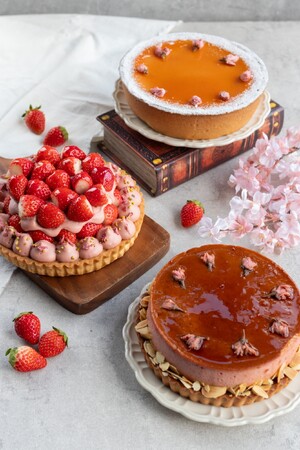 提供商品:桜いちごタルト、桜プリンタルト、桜チーズタルト