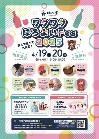 梅乃宿酒造株式会社(本社:奈良県葛城市、代表取締役:吉田佳代)は4月19日(土)、20日(日)の2日間、「ワクワクほろよいFes2025 」を開催します。