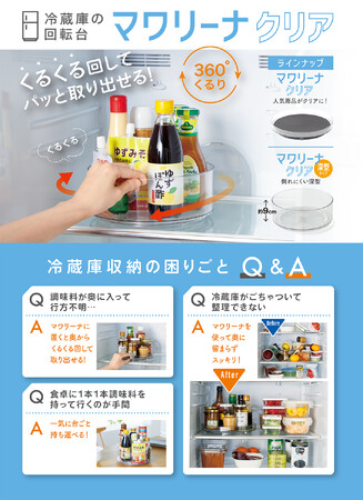 冷蔵庫で大活躍!奥のモノが簡単に取り出せる大人気のマワリーナにクリアタイプが新登場!3月3日より発売