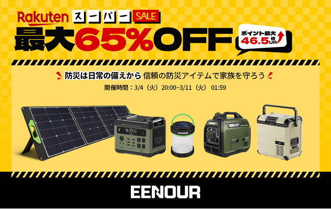 【防災は非常の備えから】EENOUR楽天スーパーSALE実施中!最大65%OFF&ポイント最大46.5倍UP↑