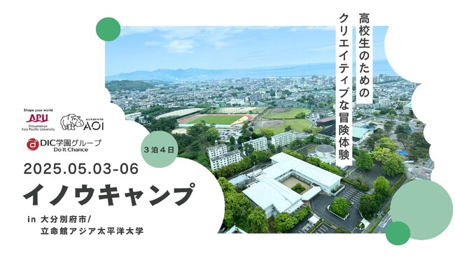 立命館アジア太平洋大学(大分県別府市、学長:米山裕、APU)は、「総合型選抜専門塾AOI」(以下AOI)を運営する株式会社花形(京都府京都市、代表取締役:小澤 忠、以下当社)、株式会社ディック学園(大分県大分市、代表取締役社長:赤嶺 一夫、以下DIC)と共同で、高校生が大分県別府市に滞在しながらフィールドワークなどのグループアクティビティを通して新しいまちづくりを提案する「イノウキャンプ」を実施します。