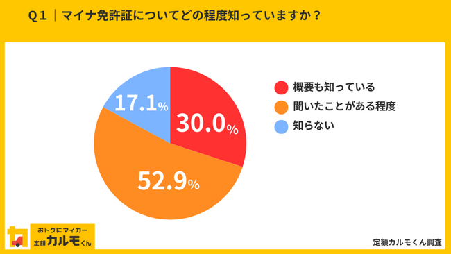 個人向けカーリースサービス「おトクにマイカー 定額カルモくん」(以下、定額カルモくん)を提供するナイル株式会社(本社:東京都品川区、代表取締役社長:高橋 飛翔)は、運転免許を持っている全国の男女1,857人を対象に、3月24日から運用が始まる「マイナ免許証」についてインターネット調査を実施しましたので、調査結果をお知らせいたします。