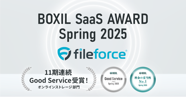 ファイルフォース「BOXIL SaaS AWARD Spring 2025」オンラインストレージ部門で「Good Service」(11期連続)と「料金の妥当性No.1」受賞