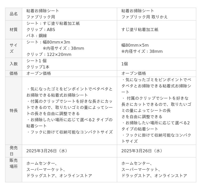 株式会社ニトムズ(本社:東京都品川区、代表取締役社長:右近敦嗣)は、発売より40年以上愛され続ける粘着クリーナー『コロコロ』の技術を応用し、好きな長さでカットしてピンポイントで簡単にお掃除できる『粘着お掃除シート』を2025年3月26日(水)に発売します。