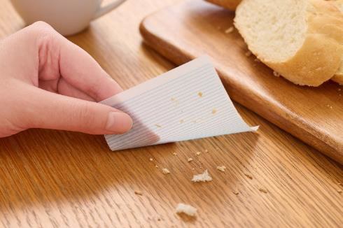 これまで、ダイニングテーブルや床の上の小さなゴミを取るには手やティッシュ、使い捨てお掃除シートやハンディワイパーなどを使うのが一般的でしたが、従来の方法では固形ゴミが取り切れないという欠点もありました。