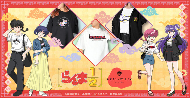 株式会社アルマビアンカはアニメイト池袋本店4F、 秋葉原1号館3F、渋谷「Space A la mode」にて、『TVアニメ「らんま1/2」』から「arti-mate」のオリジナルアパレル、雑貨を限定販売いたします。