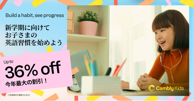 Cambly Inc.(本社:アメリカ・サンフランシスコ | 日本マーケティング担当:小川 葉子)は、2025年3月6日(木)~3月28日(金)の期間限定で、お子さま向けオンライン英会話サービス、Cambly Kids(キャンブリーキッズ)の受講料が最大36%OFFとなる特別セールを開催いたします。