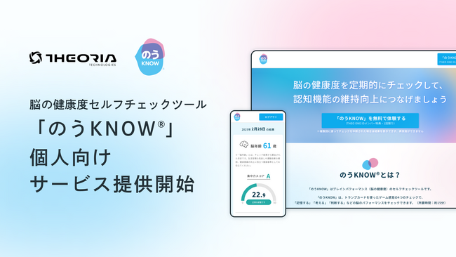 Theoria technologies、脳の健康度セルフチェックツール「のうKNOW(R)️」の個人向けサービス提供開始