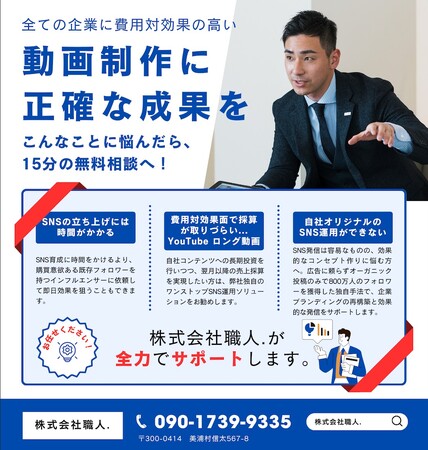 - SNSと動画の力で企業の課題を解決!株式会社職人が始動03/07 09:00