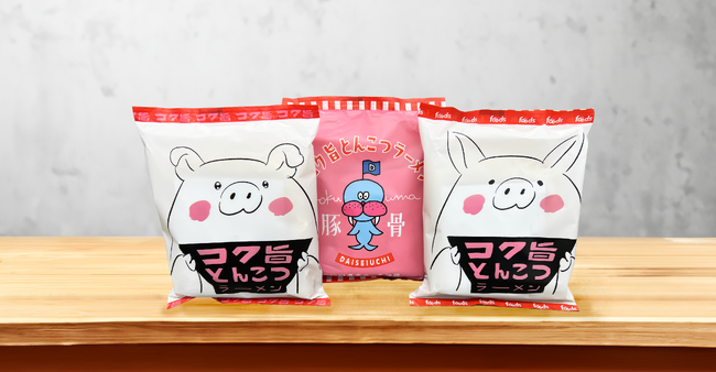 パッケージデザインは、、豚骨らしいブタのデザイン2種と、フーズアンドフーズが所属するダイセーグループのマスコットキャラクター「ダイセーウチ」デザイン1種を展開。