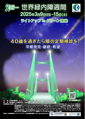 アイングループでは、2025年3月9日から15日の世界緑内障週間にあわせ日本緑内障学会が主催する「ライトアップinグリーン運動」に協力し、緑内障の啓発を行います。