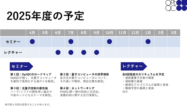 OptQC株式会社(本社:東京都豊島区南池袋、代表取締役:高瀬 寛)は、光量子コンピュータの産業応用を推進するメンバーシッププログラム「HIQALI(ヒカリ、Hub for Innovation in Quantum And Light-driven Industry)」を設立し、参加企業の募集を開始します。また、HIQALI参加企業を対象としたセミナー「光量子コンピュータの実用化戦略と未来展望」を4月24日(木)に開催します。