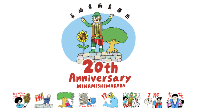 この度長崎県南島原市は、市制施行20周年を迎えるにあたり、イラストレーター・花くまゆうさく氏が描くアニバーサリーロゴおよび、オリジナルLINEスタンプを制作しました。